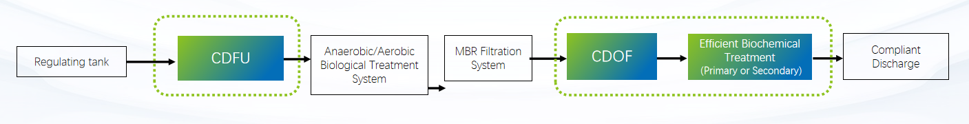 1. High Efficiency: After treatment by the CDOF unit, the chemical oxygen demand (COD) of the effluent can be reduced to below 400 mg/L, with a chromaticity of ≤ 30 and no unusual odor. When combined with a Biological Aerated Filter (BAF) for treating landfill leachate concentrate, the effluent quality can meet the GB16889-2008 standard.