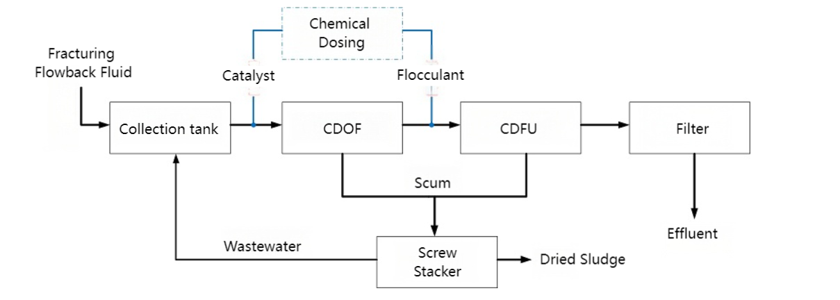 To address the challenges in treating fracturing flowback fluid, Sinokle has developed a new treatment process. This process primarily includes the following steps: