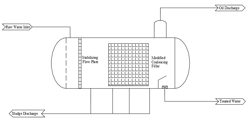 This equipment incorporates high-efficiency coalescing inclined plate internals, which increase oil droplet size and reduce retention time. This enables highly efficient oil-water separation while achieving a more compact structure. The specially designed inlet cyclonic device utilizes centrifugal force to rapidly separate dispersed oil, thereby reducing the load on the downstream coalescing media and preventing clogging of the internals.