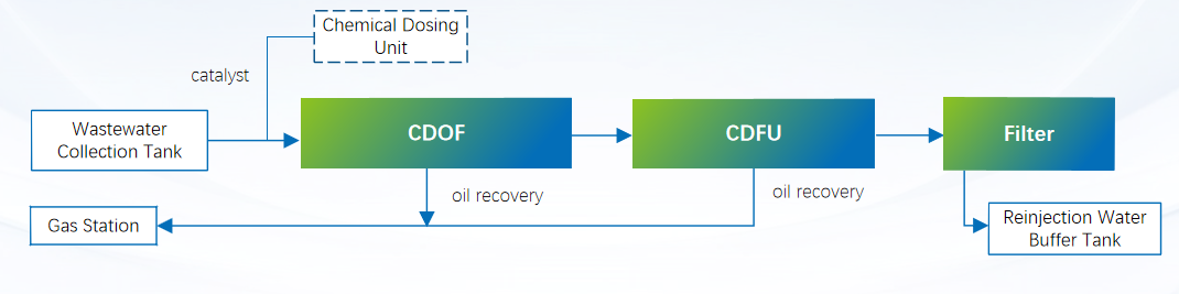 Inclined plate oil separation pretreatment: Oily wastewater from production separators and electric dehydrators is mixed with chemical agents, then enters the inclined plate oil separator for preliminary separation to remove large free oil particles.