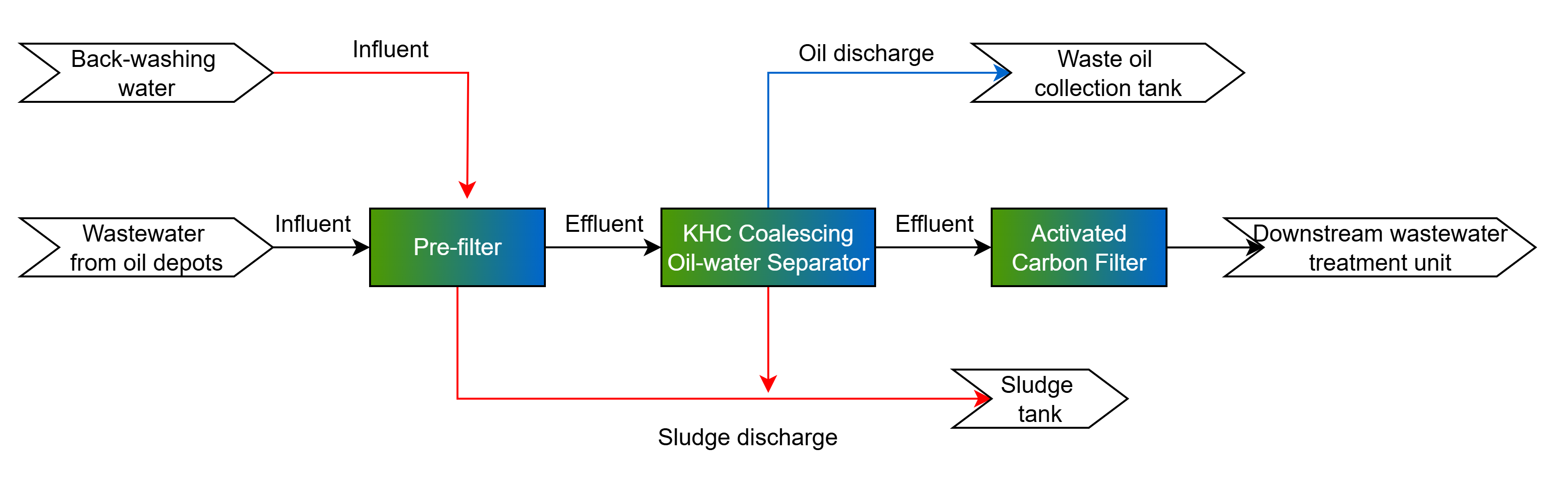 A wastewater treatment project for the light oil depot of a combined heat and power (CHP) plant in Shaanxi Province was put into operation in September 2022, with a treatment capacity of 120 m³/d. The combined process of prefilter + KHC coalescing oil-water separator was adopted. The influent oil content was 200 mg/L and suspended solids (SS) were 100 mg/L; after treatment, the effluent oil content was reduced to below 5 mg/L, SS ≤ 5 mg/L, and the oil removal rate exceeded 97%.