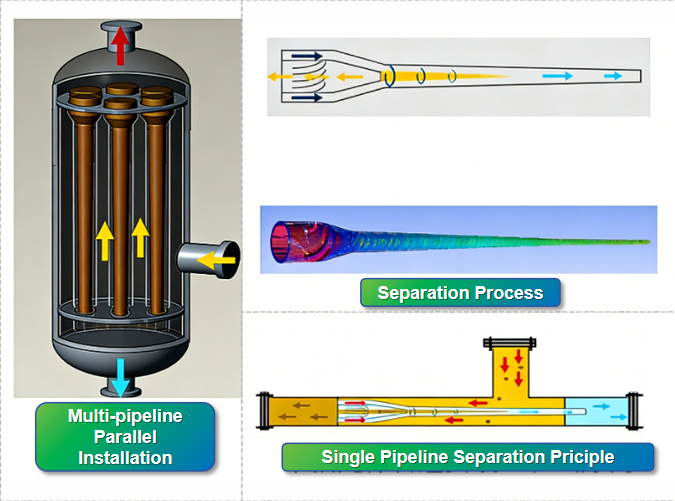 · Advanced Axial and Vortex Flow Technology: Provides stronger centrifugal acceleration, faster separation, and more compact equipment.