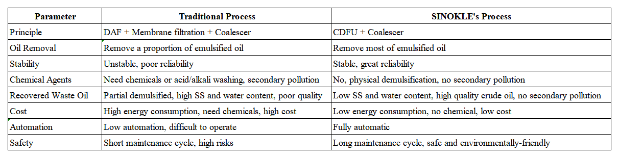 Patented coalescing packing and high-precision coalescing cores imported from the United States are used for rapid and thorough emulsion breaking.
