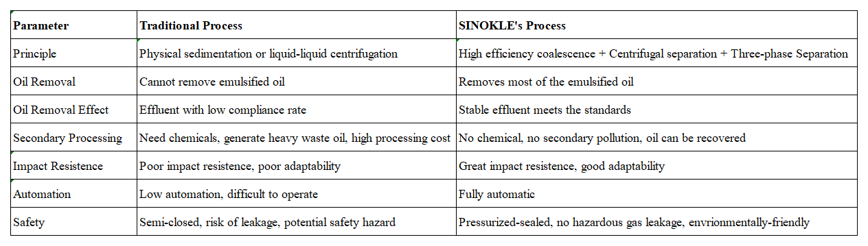 1. Escaping the traditional separation mode solely based on the density difference between oil and water, relying instead on the density variance among gas-water and oil-gas-water. This allows oil removal to be less affected by the density of contaminated oil, significantly enhancing separation efficiency.